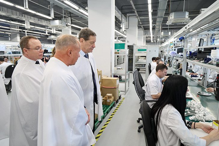 Александр Жуков, первый заместитель Председателя Государственной Думы Российской Федерации, Юрий Петухов, первый заместитель Губернатора Новосибирской области, и Сергей Цукарь, министр цифрового развития и связи региона, посетили предприятие, специализирующееся на производстве радиоэлектроники и телекоммуникационного оборудования.