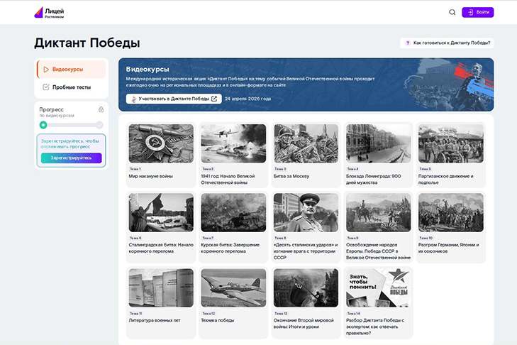 «Для подготовки к Диктанту Победы в марте прошлого года мы запустили одноименный раздел на нашей образовательной платформе "Ростелеком Лицей", который доступен бесплатно и без регистрации. Здесь собраны пробные тесты, тематические конспекты и видеолекции Российского военно-исторического общества. Подготовку к Диктанту на "Лицее" прошли уже свыше 200 тысяч человек».